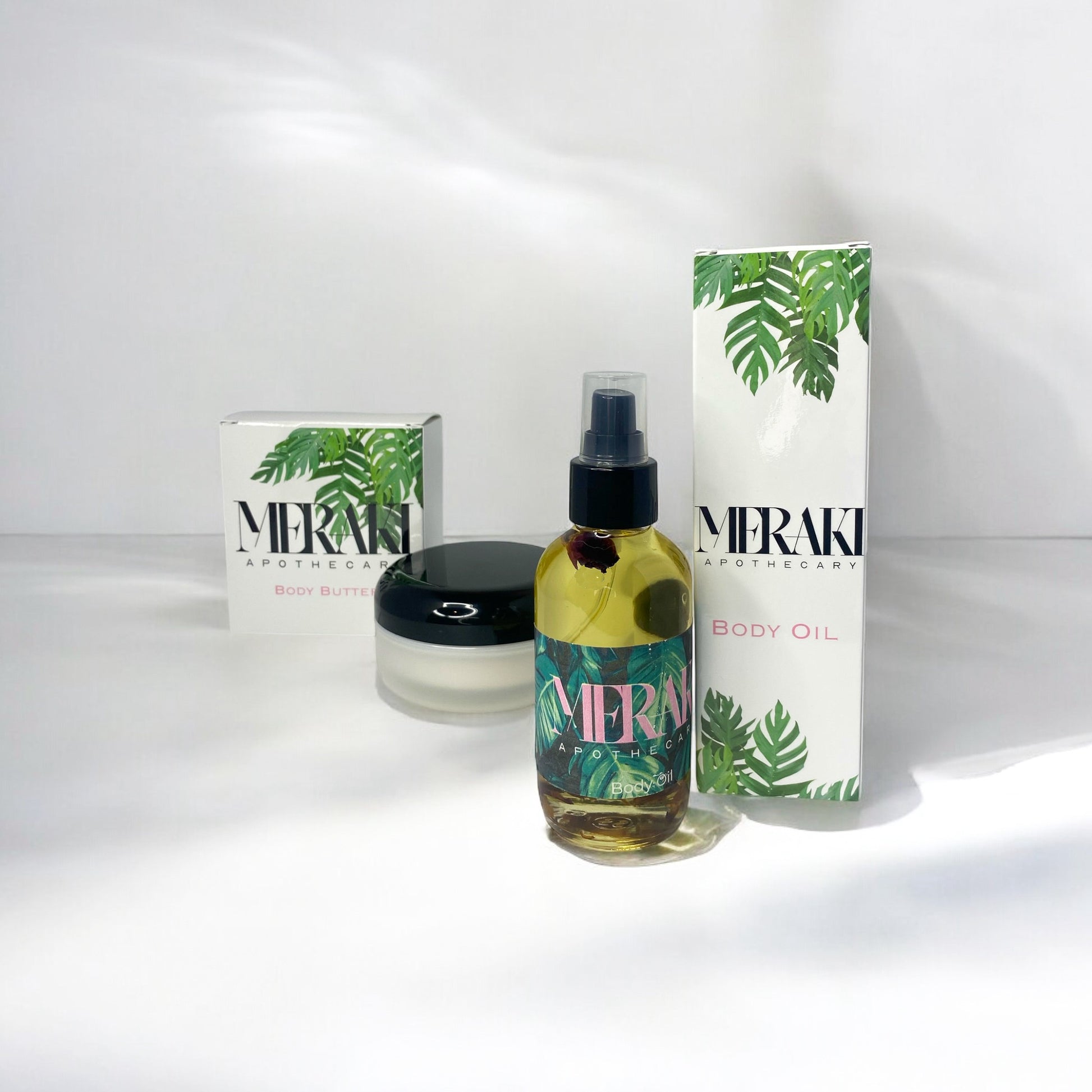 Indulge your skin with the ultimate nourishing experience. Our Body Duo, featuring a rich handcrafted Body Butter and a luxurious Body Oil, is the perfect pairing to keep your skin soft, hydrated, and glowing all day long.